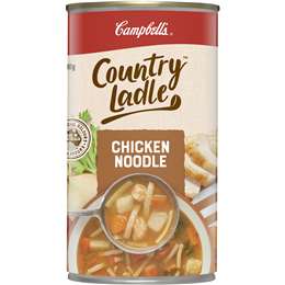 Warm up your day with Campbell's Soup Country Ladle Chicken Noodle! This 500g classic comfort soup is packed with tender chicken, hearty noodles, and rich broth that feels like a cozy hug in a bowl. Perfect for a quick snack or a tasty meal, it’s your go-to for delicious, no-fuss satisfaction anytime. Grab a ladle and dive into pure yum!