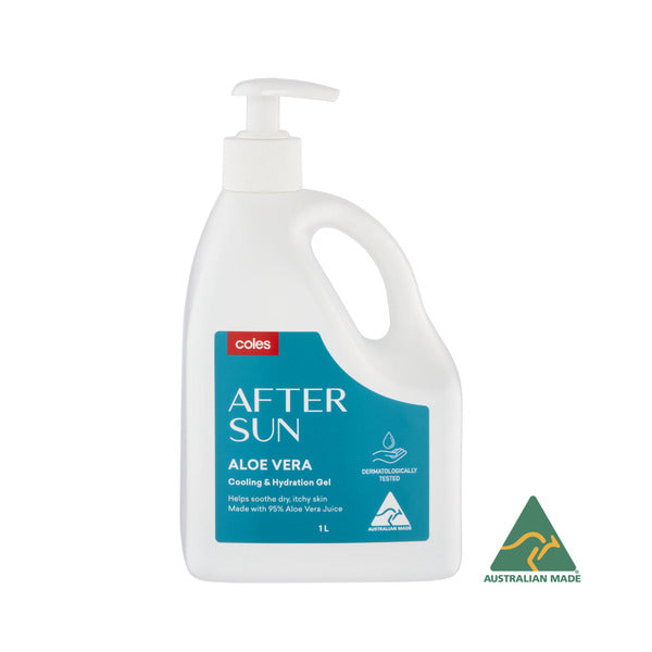 Coles After sun Aloe Vera Gel helps soothe, hydrate and soften your skin. Regular use will keep your skin feeling soft and supple all year round. Ideal for use after exposure to the sun.