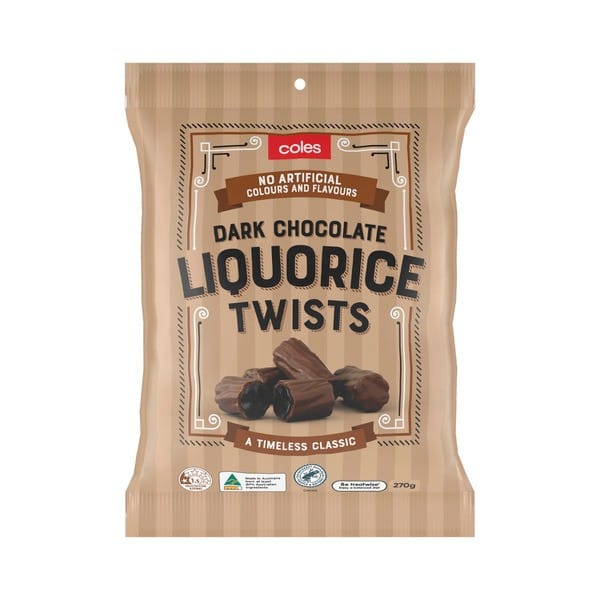 Coles Lollies Liquorice Twists Dark Chocolate 270g