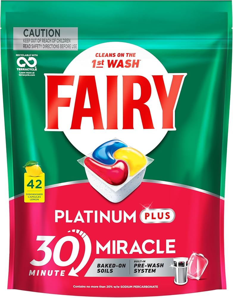 Fairy Lemon Platinum Plus All in One Automatic Dishwasher Capsules with Built In Prewash Power, prewashing some of the toughest grease and burnt on bits so you don't have to. Our plant operates with 100% renewable electricity (purchased). Designed to be effective even in Eco Cycle, which aims to help you save energy & water